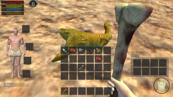 3、借助各类资源打造形形色色的武器,与恐龙展开战斗,成功击杀恐龙后能够恢复自身生命值。