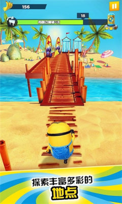 它是史上最搞笑的有意思的跑酷游戏,可爱搞怪的小黄人、人见人爱的小黄人、无所不能的小黄人精彩来袭,大家做好迎接它的挑战么,感兴趣的玩家赶快来挑战吧。在紧张有趣的整蛊关卡中快速奔跑,在此过程中跳跃、闪避、翻滚,把小黄人撞出跑道。与小黄人共同畅享不可思议的欢乐时刻,尽情收集香蕉,完成激动人心的特别任务,提升你的分数。