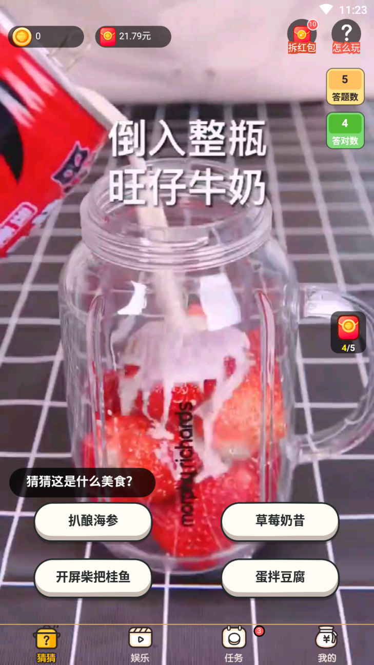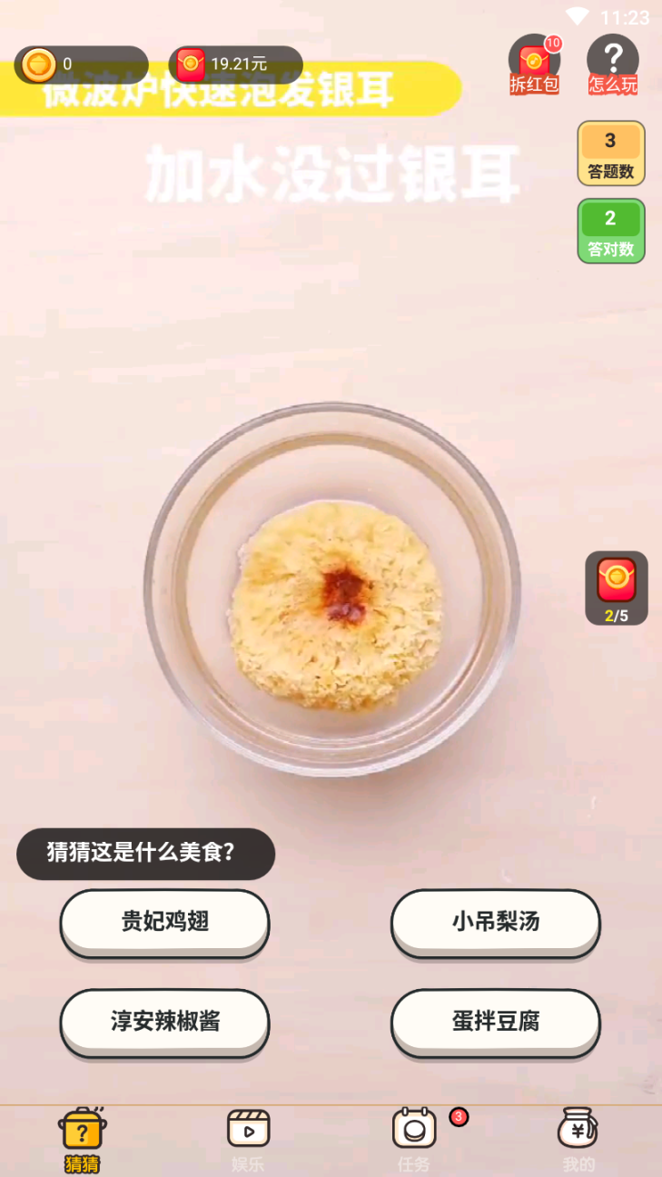 1、看视频猜美食,根据提示去填写,完成答题任务即可;