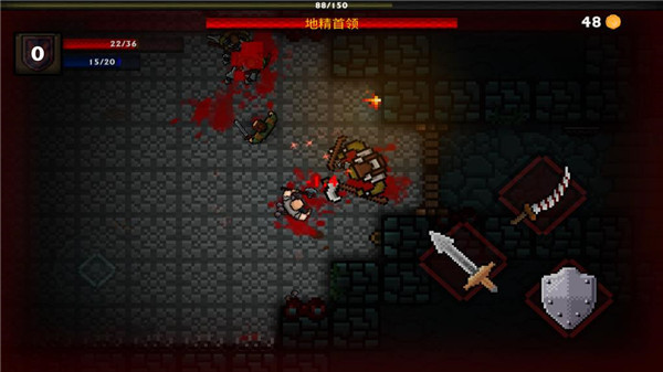 5、楼层越高,难度越大,墙壁会释放武器,怪物也会丢武器攻击,可能会中毒,玩家血量会减少,屏幕有一闪一闪的感觉。