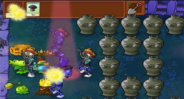 2、然后玩家需要开僵尸罐子,打开罐子之后就会出现一个僵尸,击败所有的僵尸才可以顺利闯关;