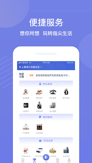 同样地,这也是一款专注于服务业主的手机平台,涵盖智能家居控制、物业管理费支付、停车费支付、公共事业费支付、报修服务、周边商家等功能。它深入了解小区业主的需求和日常生活,坚持以移动互联网思维来提升业主的生活质量,并与社区共同构建智慧社区,开启新的移动互联网生活方式。平台运用了AI、物联网、云计算、大数据、数字孪生等技术,将科技、运营和服务深度结合,创造出多种智慧应用场景,实现平台、空间、设备与用户之间的互动连接。通过横向场景数据与纵向生态系统数据的整合,实现对用户全生命周期的管理,推动空间交互的革新,构建一个万物互联的智能世界,更新所有服务,提供更智能化的服务体验,使用户使用更为便捷高效。