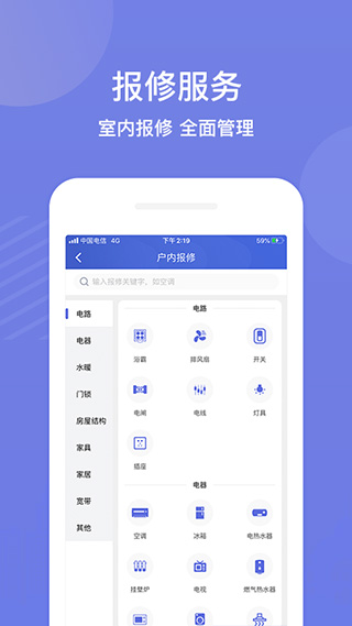 5、缴费历史:您的缴费历史可以在app中查看,让用户轻松的知道自己的缴费情况。2、编辑报修的类型,还可进行描述;