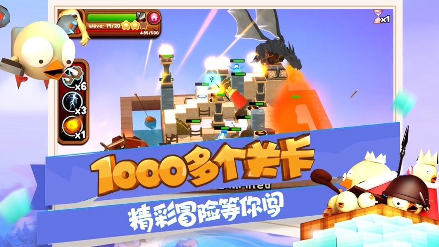 攻堡鸡兵是一款有趣好玩的3D策略塔防类手游,玩家需抵御无穷无尽的小鸡来袭,通过多样化的机关配置与不同风格的塔防装备守护家园免遭侵占。游戏背景设定在中世纪,提供多种玩法模式及上百个挑战关卡,使你能够充分体验紧张刺激的三维塔防竞技。游戏亮点在于其宏大的角色攻击方式及众多新奇有趣的特殊道具,在各类独特场景中展开海陆空大战,为玩家带来无尽欢乐。游戏中拥有海量防御塔自由组合,加之萌趣的卡通画风和轻松愉悦的背景音乐,使得整体游戏魅力倍增。