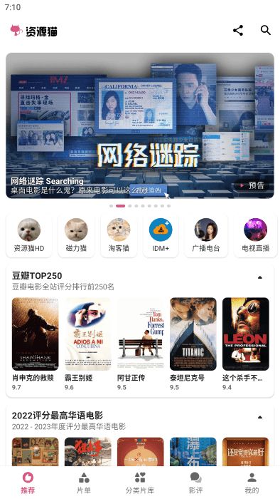 资源猫app是一款专门为用户设计的视频播放软件,支持大量影视和全网资源播放,全部免费,兼容性好,紧跟全球视频播放的最新趋势,确保观看体验。该软件汇集了多个视频平台的内容,比如爱奇艺、优酷等,而且所有资源都可以免费观看,用户能够享受高清流畅的观影乐趣。