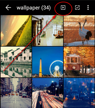 2、您可以在相册中查看当前图片的缩略图,点击右上角的【幻灯片播放】按钮,即可自动播放相册里的图片。
