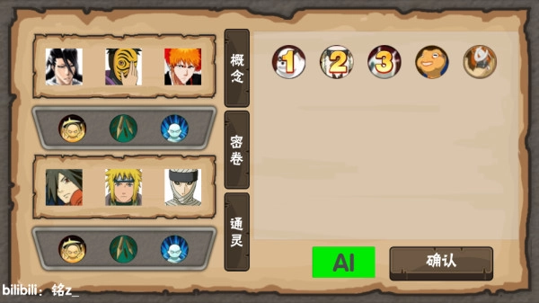3、进入选角界面,选择三个角色组成队伍,并挑选三位对手。此外,玩家还需选取三种不同的秘卷及通灵技能。玩家需慎重考虑,合理搭配秘卷与角色,因为这具有策略性,同时抓住操控替身的机会也非常重要。