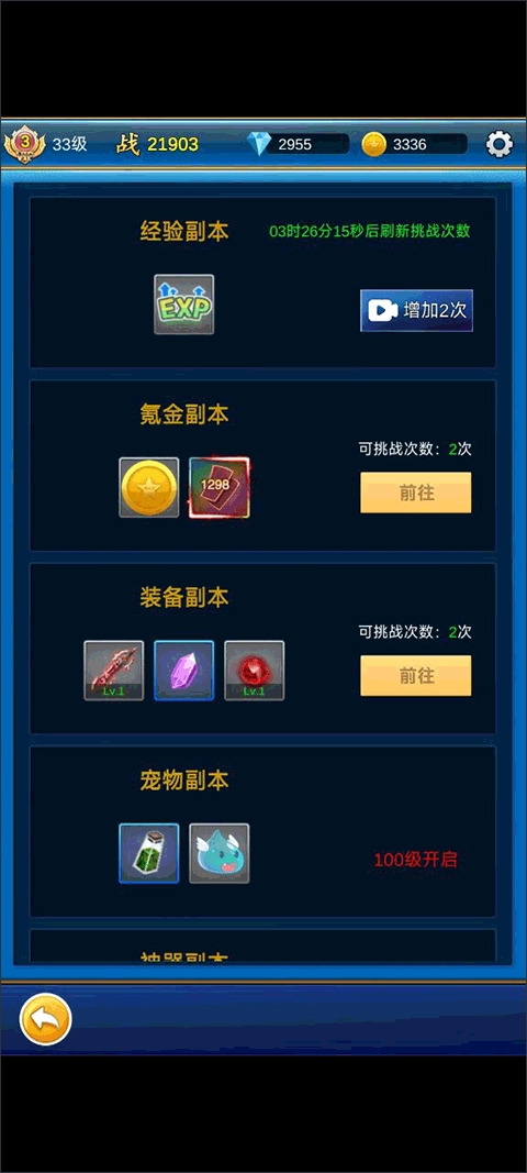 升级主要来源是爬塔,新手进来就爬塔升级,然后就是副本,爬塔扫荡,离线挂机