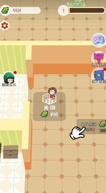 2、第一步 升级 建造 你的房间,升级房间,客人入住结束就会有收益