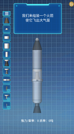 1、拖放界面中的组件,根据物理原理进行布局,组装您的专属火箭;