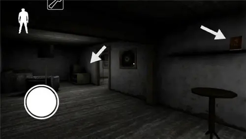 下楼梯后左边的地板上有一根黑线,从上面走过铃铛会响,需要注意。楼梯旁的柜子里可以躲,柜子对面有一个门,里面可能刷东西。柜子旁边有一个门通向地下室(由于画面较暗,所以不大容易发现),同时奶奶的出生地就是地下室,所以萌新不要一开始就往地下室跑哦。最后说明一下,以后就不提示了。墙上的画,照片,小物件等都是可以被碰掉的,所以走路时尽量不要贴墙。