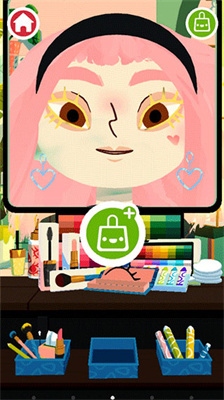 欢迎购买彩妆站,让您的沙龙拥有更多功能! 这个造型站拥有颜色和种类非常齐全的化妆品。 可以用睫毛膏刷出浓密的睫毛,再使用眼线、眼影或腮红工具呈现完整妆容!使用面部彩绘工具在角色面部绘制出各种图案。你有什么创意?