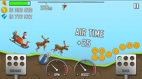 游戏可玩性很高,玩法也比较特殊,简单容易上手,只需要通过调节左右两个踏板即可,其中左侧为刹车减速按钮,主要控制后方的重心,右侧为加速,控制前方的重心,目标即是收集前方的金币、钻石,尽可能的让自己跑的更远。