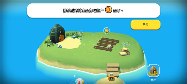 解锁后的村庄会自动产生金币,通过点击金币图标就可以获得金币啦;
