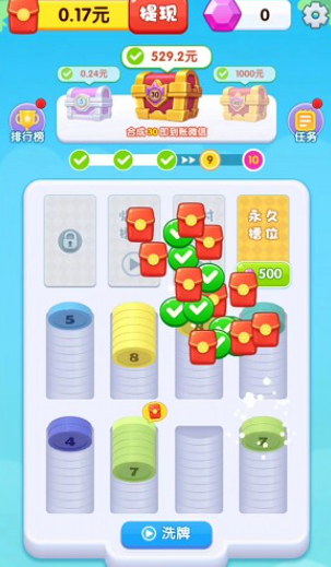 合数字 小游戏 ,这个只有一种奖励,他们家是过关提现方式的。
