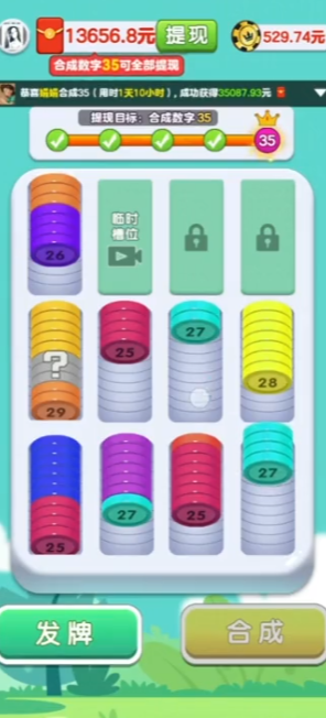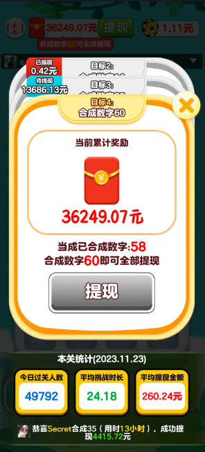 但是前面给的奖励很少,等我们合出指字数字的时候红包又不够提,而且过了这个数字又会失去提现资格。