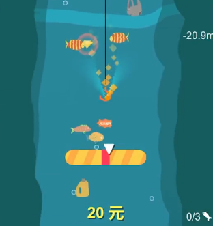1、用力甩钓竿,就会让鱼钩进入到深海世界中,在海底获得更多种类的鱼儿来售卖。
