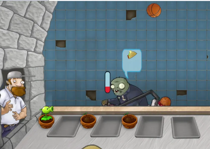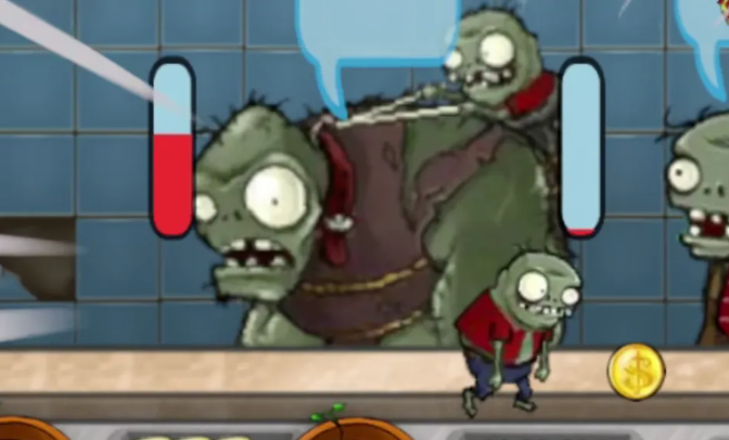 进入游戏后,你会看到熟悉的角色。这个游戏的目的不是打僵尸获取金币,而是要为成为僵尸的顾客提供食物。我们通过销售食物给僵尸来赚取金币。