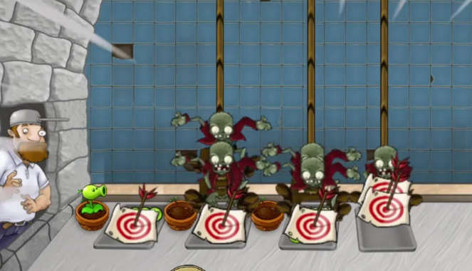 巨人僵尸可以扔出小鬼僵尸,可以将柜台的钱偷走,相当于原游戏里面小偷角色